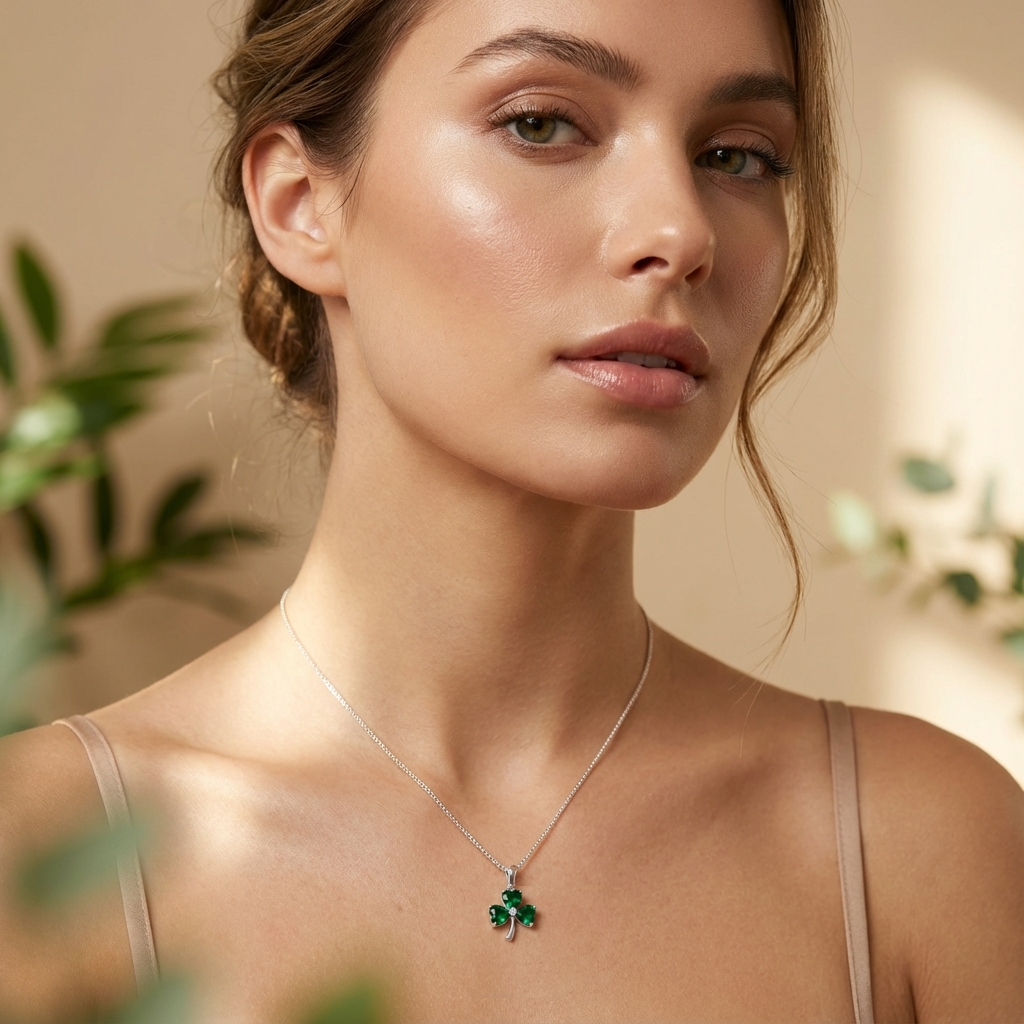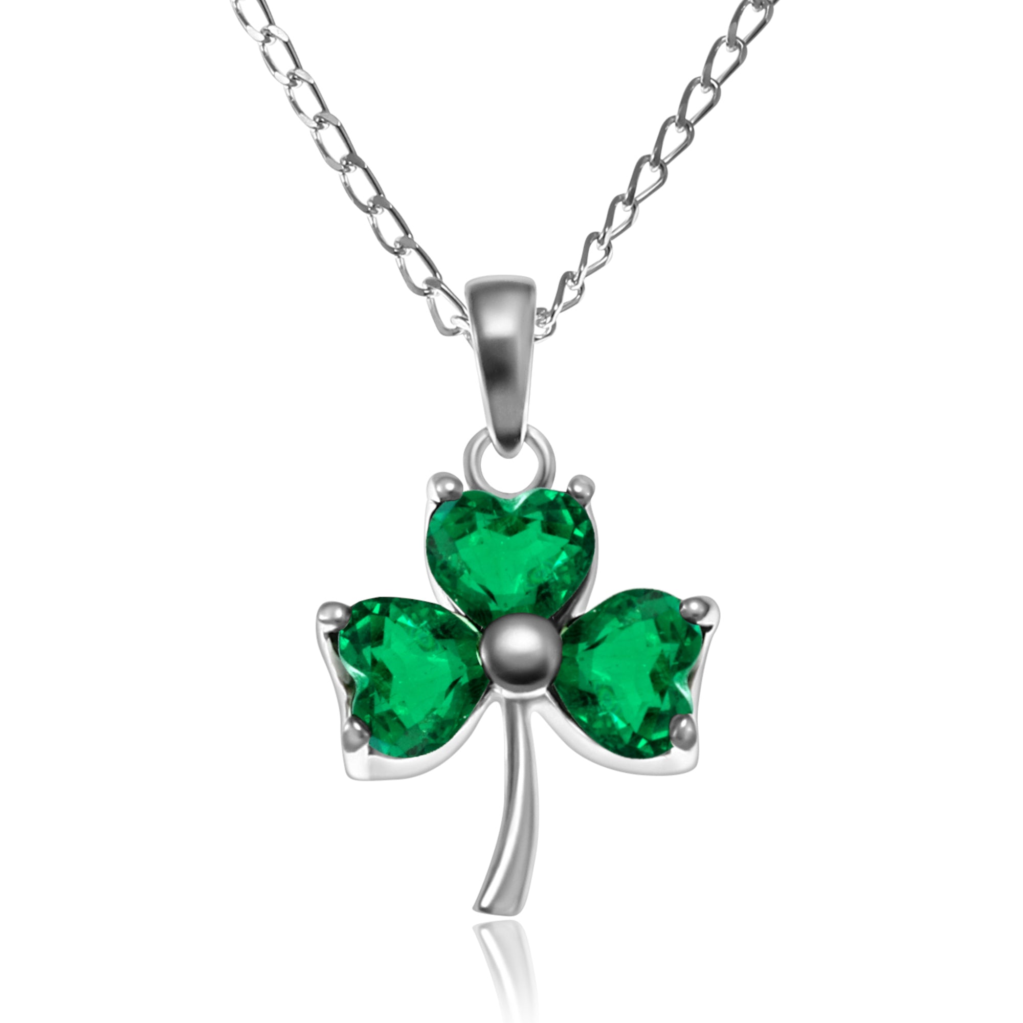 Sterling Silver Irish Shamrock Celtic Pendant Necklace for Women - Celtic Jewellery with 18" Silver Chain & Jewellery Gift Box - Faux Emerald - 16mm x 12mm