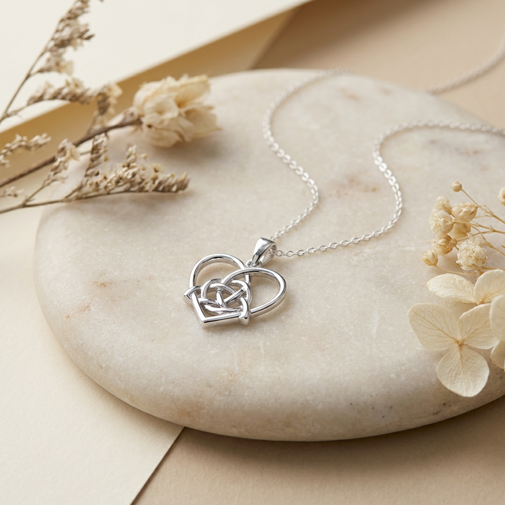 This refined Celtic heart necklace is crafted from genuine 925 sterling silver and features an interlaced knot design inspired by traditional Celtic artwork. The flowing, unbroken pattern symbolises eternity, connection and continuity, making this a meaningful piece with lasting appeal.