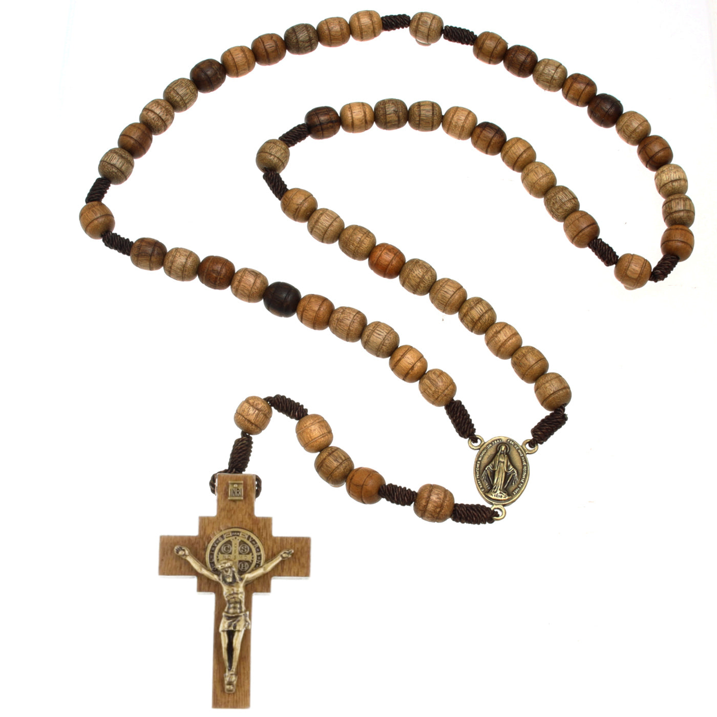 Crafted from rich brown Brazilian walnut, these wooden rosary beads offer a traditional and meaningful design with a natural, warm finish. The Miraculous Medal junction is paired with a St Benedict crucifix, combining two powerful Catholic symbols of faith, devotion, and protection.