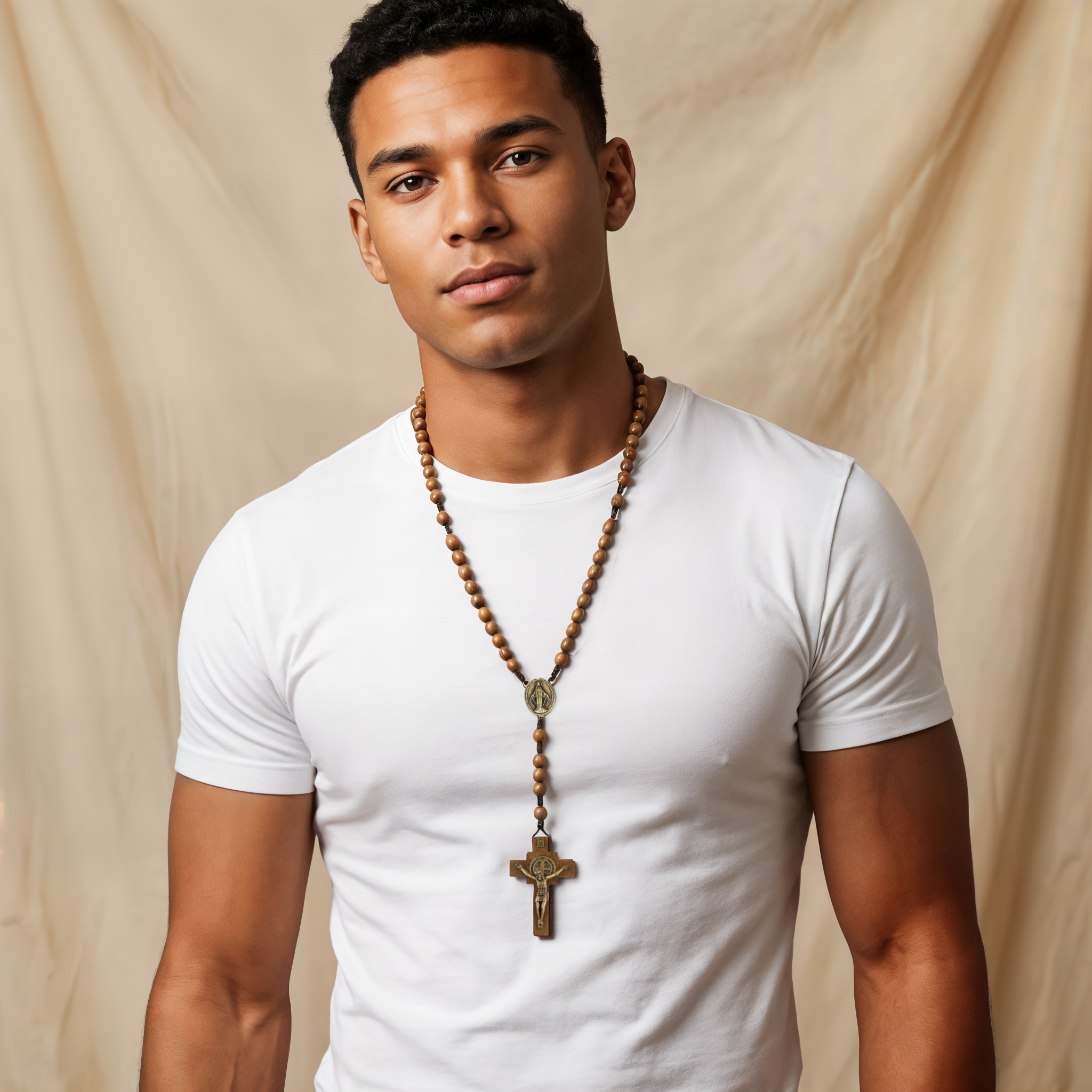 The smooth 10mm wooden beads are comfortable to hold and durable for everyday use, making this rosary both practical and long-lasting.