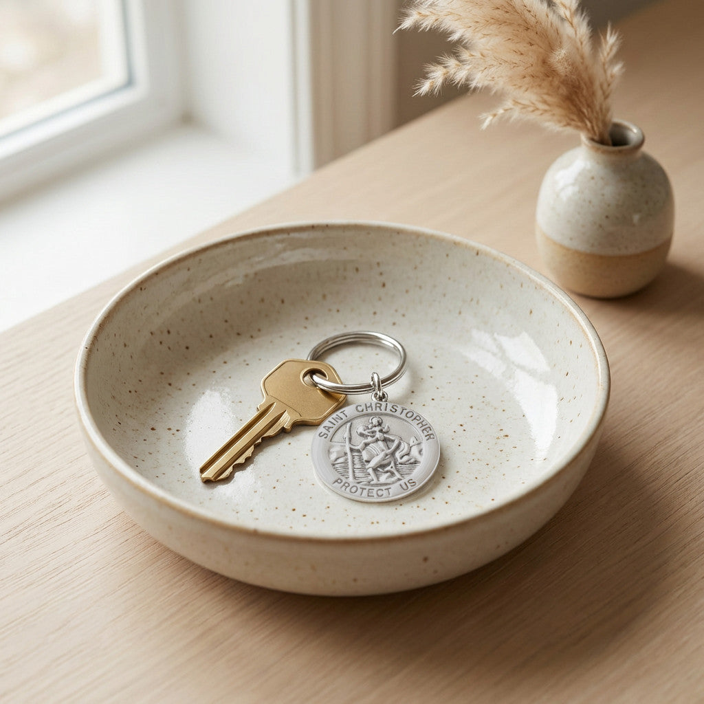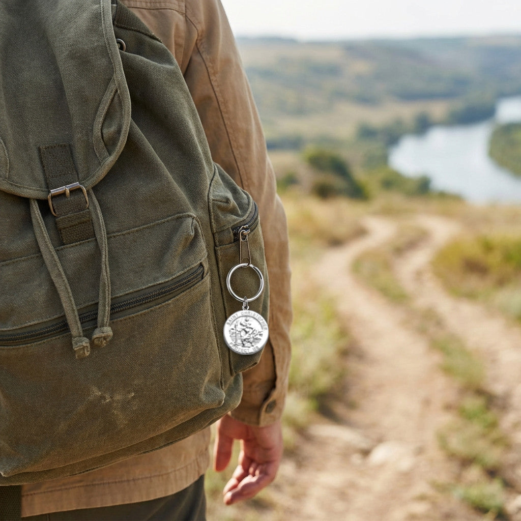 Reversible 925 Sterling Silver St Christopher Keyring