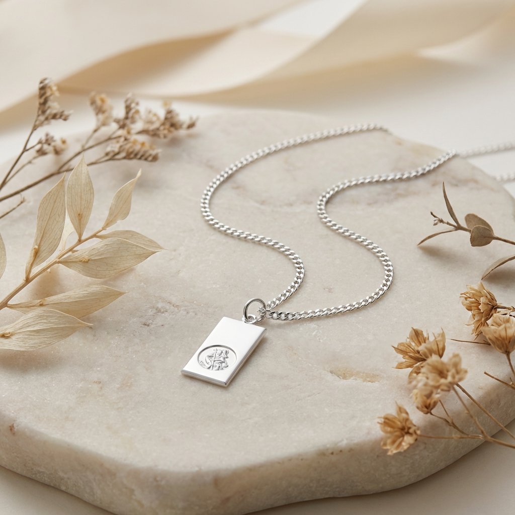Sterling Silver St Christopher Necklace with 16" Chain – 20mm x 10mm