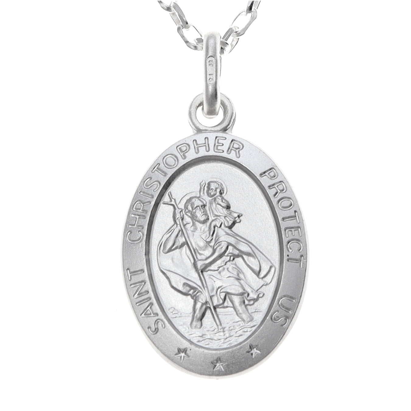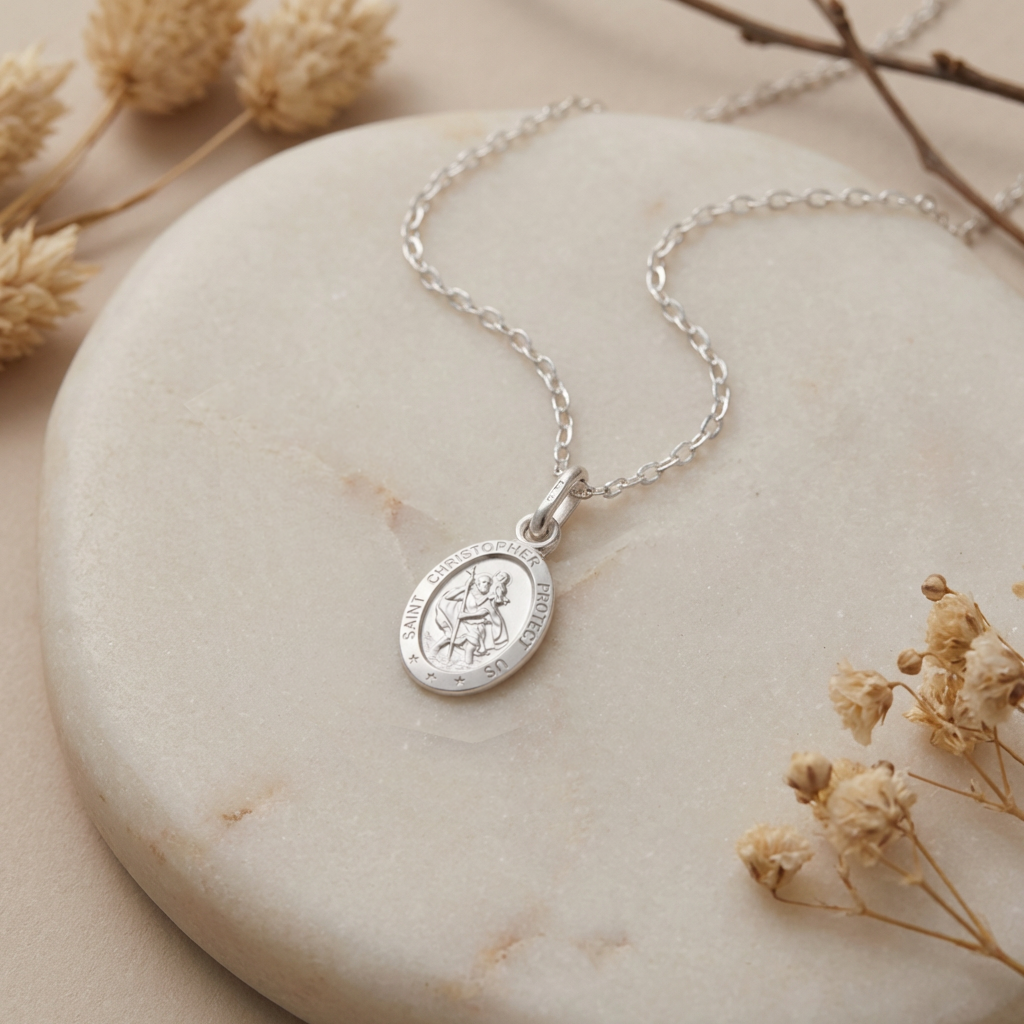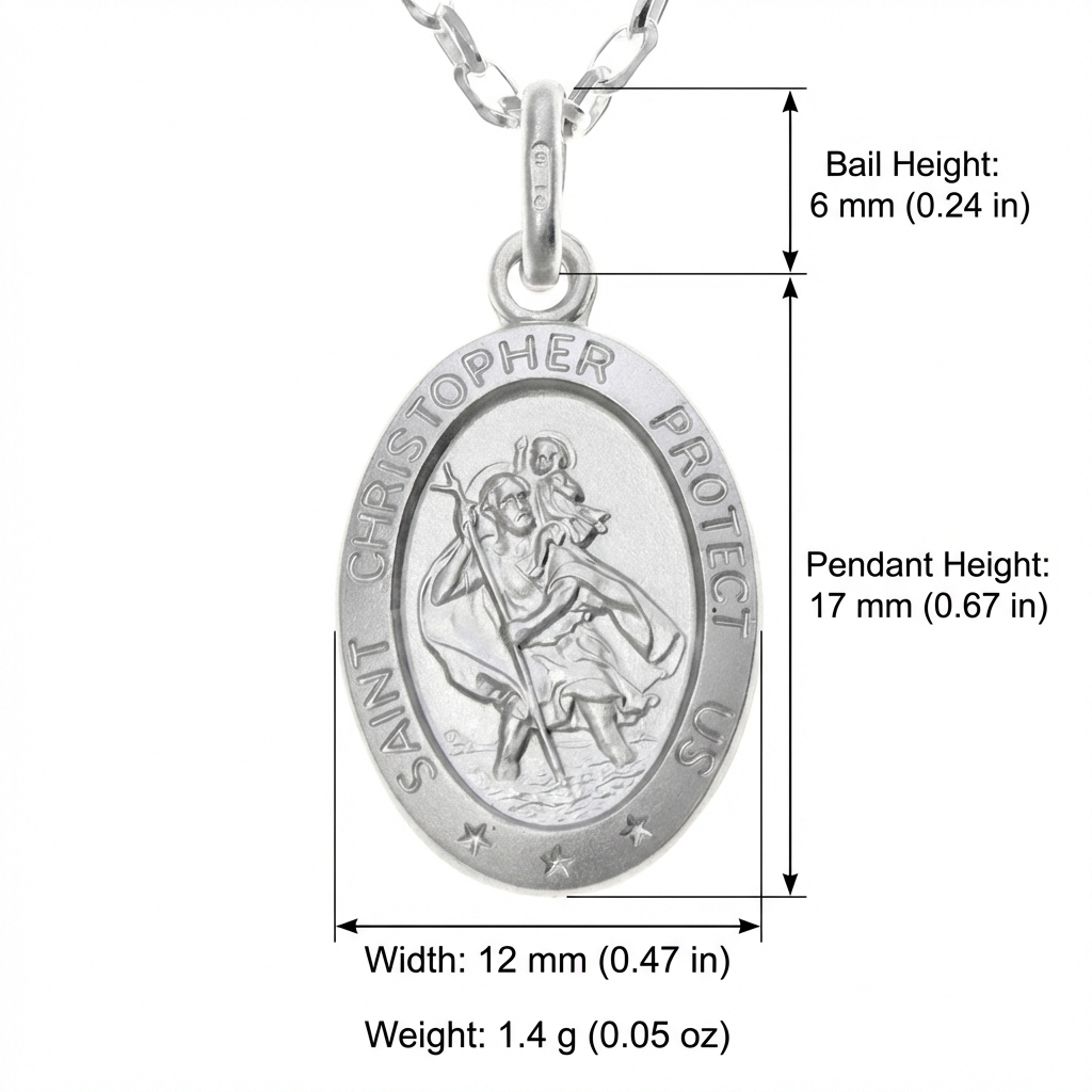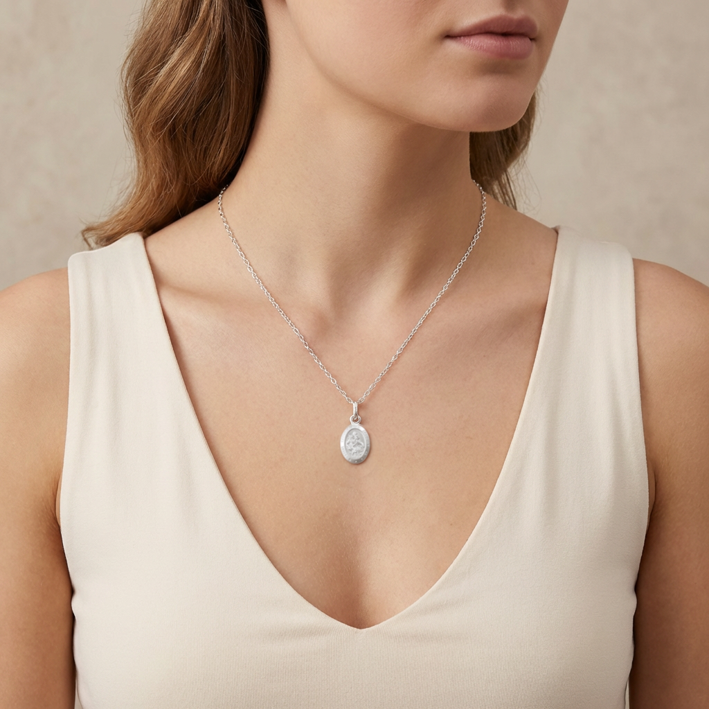 Silver St Christopher Pendant Necklace – Oval 17mm x 12mm