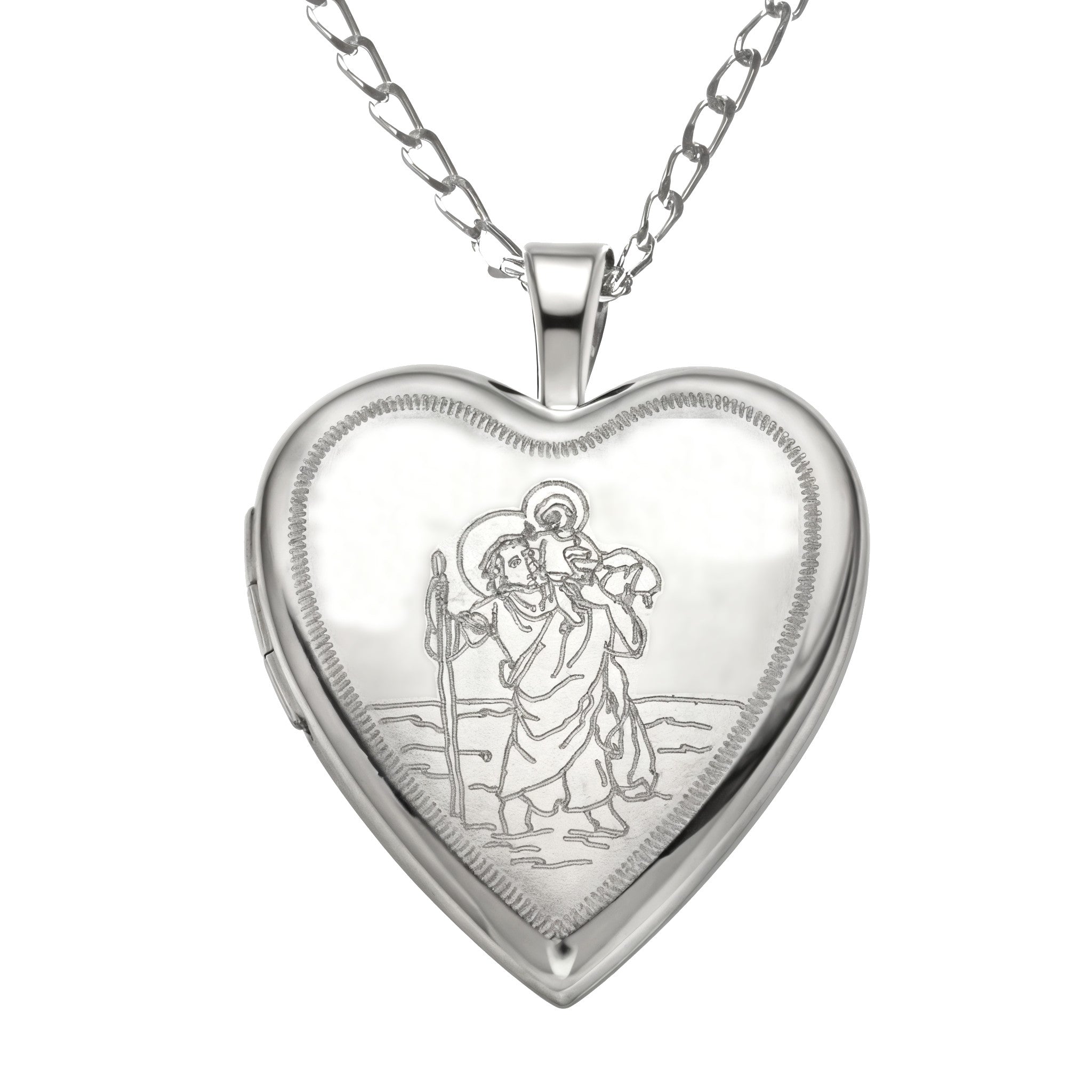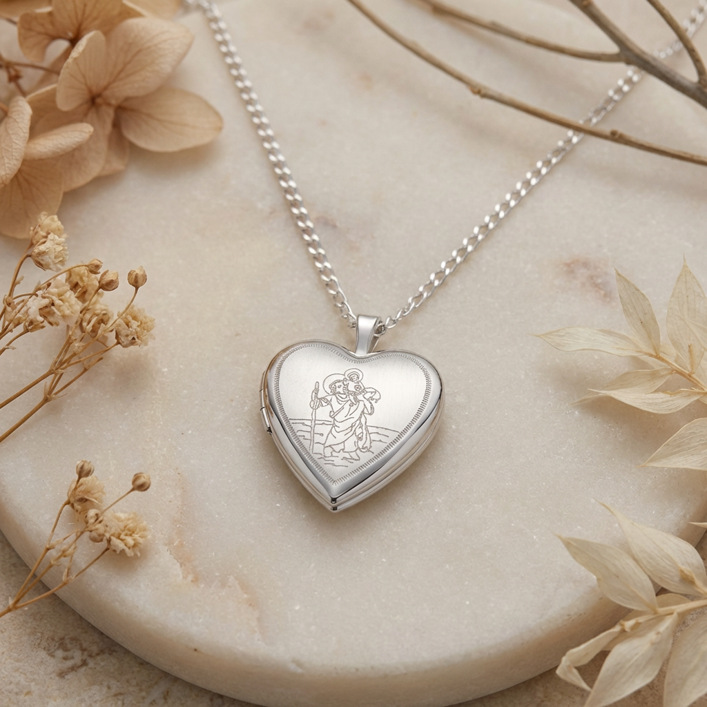 Silver St Christopher Heart Locket Necklace